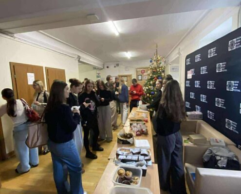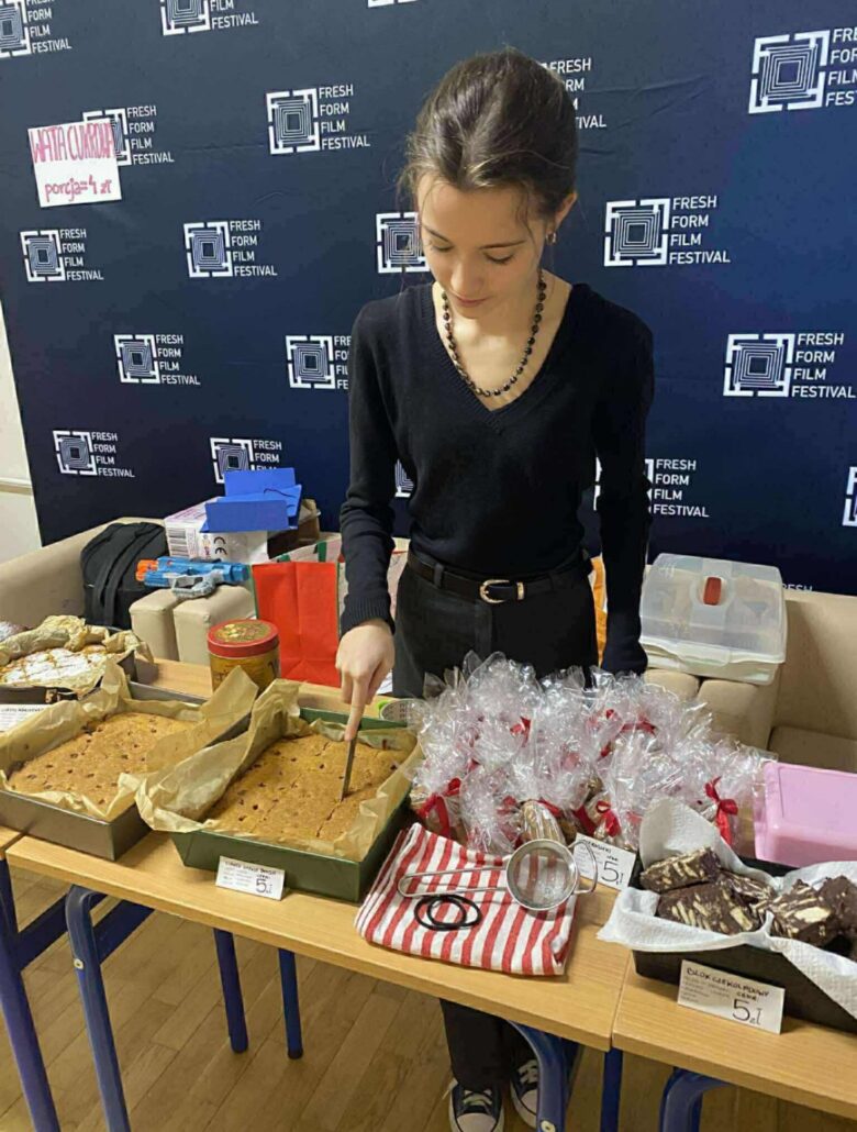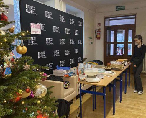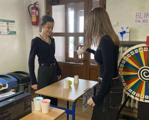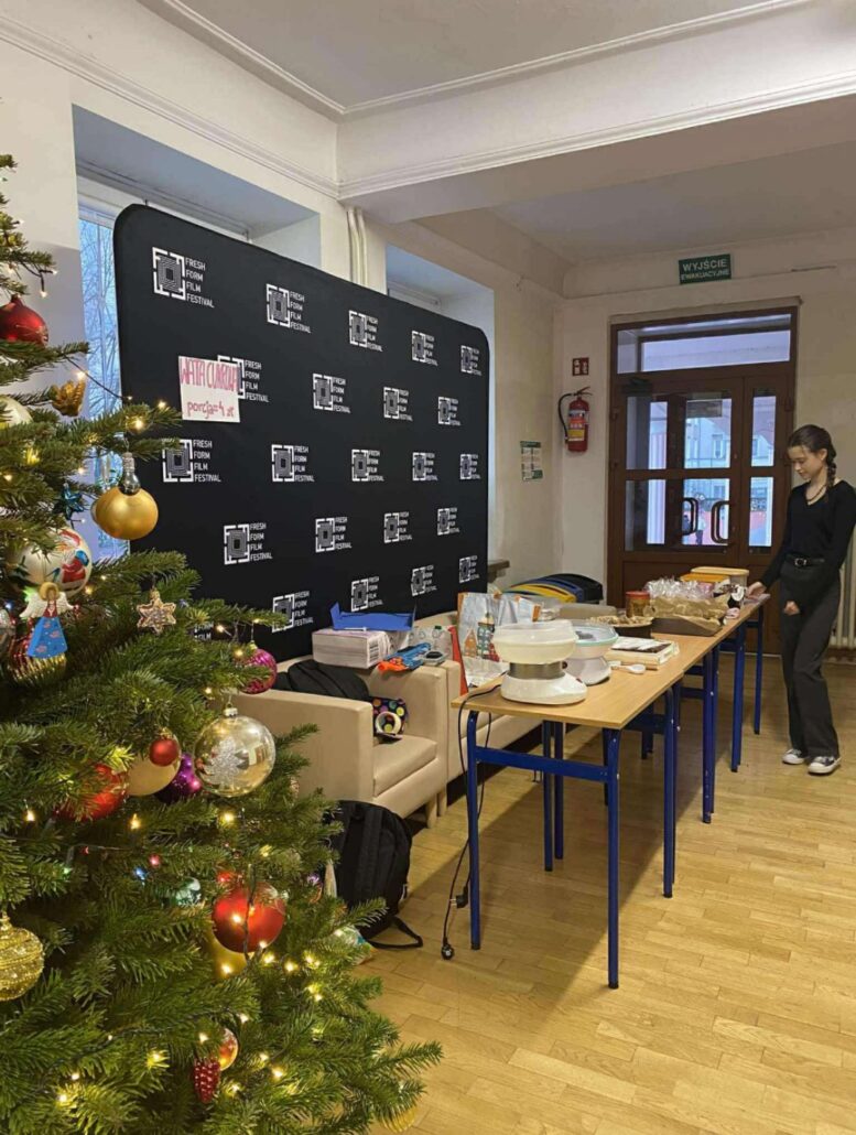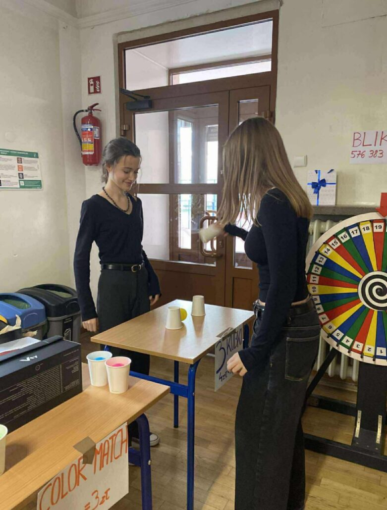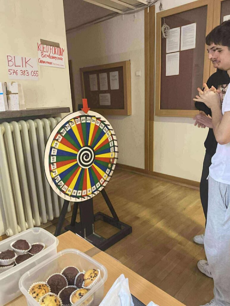 Dnia 10.12.2025 w naszej szkole odbył się festyn, gdzie, za niewielką opłatą, mozna było wziąć udział w przygotowanych przez nas grach. Jednym z nich było Koło fortuny, pożyczone od Pani Profesor Moniki Tucholskiej, na którym można było wygrać Bony do Empiku i Multikina. Można było również kupić własnoręcznie wykonane ciasta, watę cukrową, pierniki oraz breloki. Zebrałyśmy ponad 900 złotych, za które zakupiłyśmy dary, takie jak karmy oraz zabawki dla zwierząt ze schroniska „Na Paluchu”.