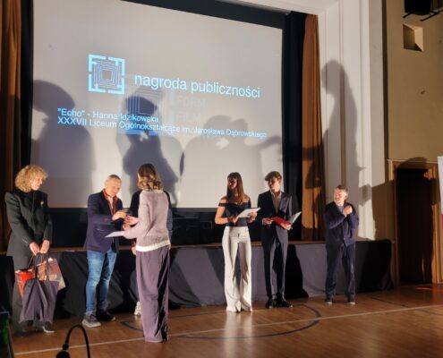 Nagrodę Publiczności natomiast wręczono za film – ECHO – Hannie Idzikowskiej z XXXVII Liceum Ogólnokształcące im. Jarosława Dąbrowskiego w Warszawie.